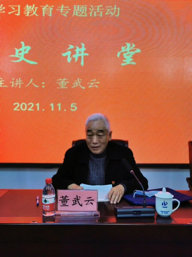 “一一九队在1958、1959年的全国地勘行业大比武中,代表华北局参赛一直是名列第一,年年拿红旗,多快好省是一一九队的名片……”这是一一九队党委党史学习教育“队史讲堂”活动开展的第三期,特别邀请了退休老干部原劳资科科长董武云,为全体职工讲述一一九队建队以来的搬迁史和奋斗史。