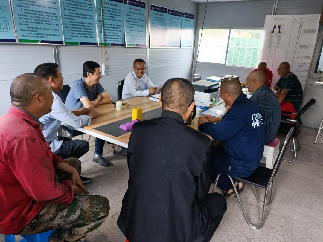 王明耀与大家亲切交谈,了解职工生产生活状况和需求,并深入施工现场,视察一线职工施工作业环境,同时对生产现场进行安全检查。他指出,要压实安全生产主体责任,发挥党建引领作用,稳定生产进度、突破技术难题,提高生产质量,确保项目顺利竣工。