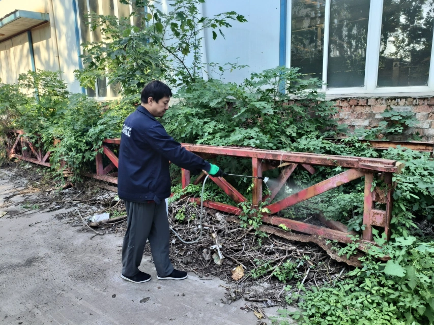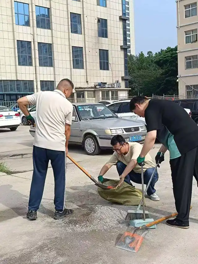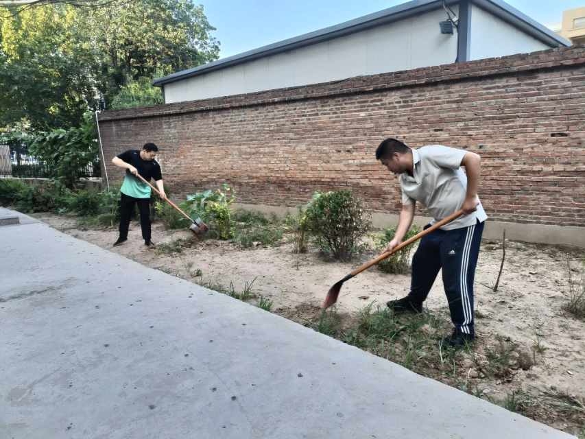办公楼南侧广场因使用时间较长出现地面碎石,周边绿植处杂草丛生,影响了办公楼整体的卫生和美观。综合服务中心人员不顾室外高温天气、顶着烈日克服困难对地面碎石进行清理,对绿植进行维护保养,割除杂草后集中清理,使办公楼南侧整体环境卫生状况得到提升,面貌焕然一新。
