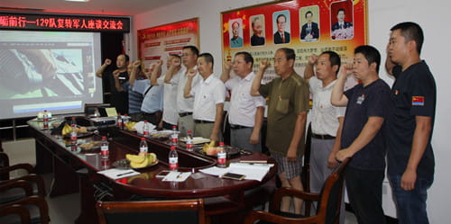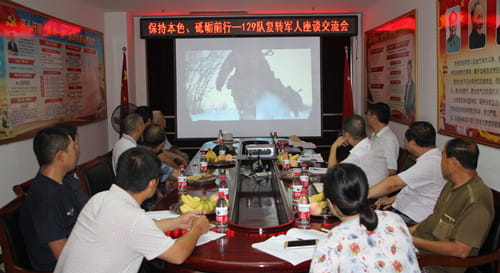 座谈会开始前大家一起观看了“前进-中国军人”纪录片,回顾了当年的峥嵘岁月。座谈会上,雒恩科首先带领大家重温了入党誓词,进一步强化退役军人的政治意识和党员意识,牢记使命、感恩奋进,激励大家不断进取,铭记入党誓言,为国家为单位贡献力量。随后,为每位党员配发了党徽、并为党员发放了政治生日卡,增强军人党员的荣誉感、使命感和责任感。最后,大家欢聚一堂进行了座谈交流,雒恩科代表队领导向军人党员代表介绍了单位近两年的经济发展情况,重点从现在单位拥有的新型设备、施工能力和近两年取得的成果进行了说明,也感谢各位军人党员代表为一二九队做出的贡献,各位复转军人代表在谈话中回忆了当年的部队生活,从抢险救灾等事情上为国家发展奉献了青春与热血,各位代表还为一二九队今后的发展提出了许多合理化建议。