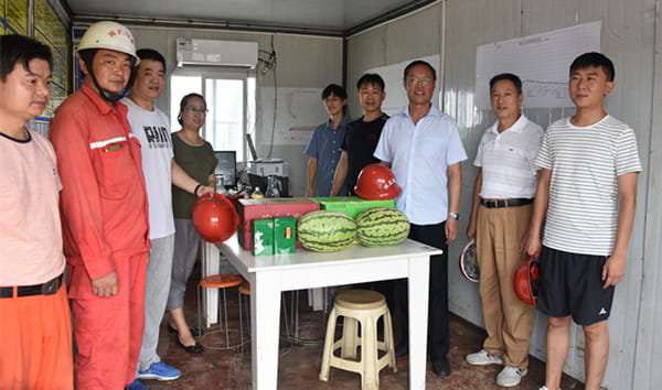 8月8日,科教中心主任、党总支书记张春沛带领工会、安全等相关部门人员到监理公司冀中能源东庞矿项目部走访慰问,为酷暑中坚持在工作岗位的一线职工送去了西瓜、药品、茶叶等防暑降温用品。在监理项目工地,张春沛细心询问了职工们的工作状况和生活状况,尤其是对年纪偏大却仍奋战在一线的职工反复叮嘱:要注意防暑降温,注意身体健康。同时要求监理项目部的全体人员,要始终把安全生产放在首位,做到高温不忘防护,把烈日变为激情。