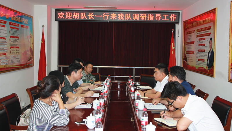 为进一步开拓市场,寻找更多合作伙伴, 2018年8月28日下午,华北地质勘查局综合普查大队队长胡龙华一行5人和北京大地公司总经理来一二九队调研交流工作。