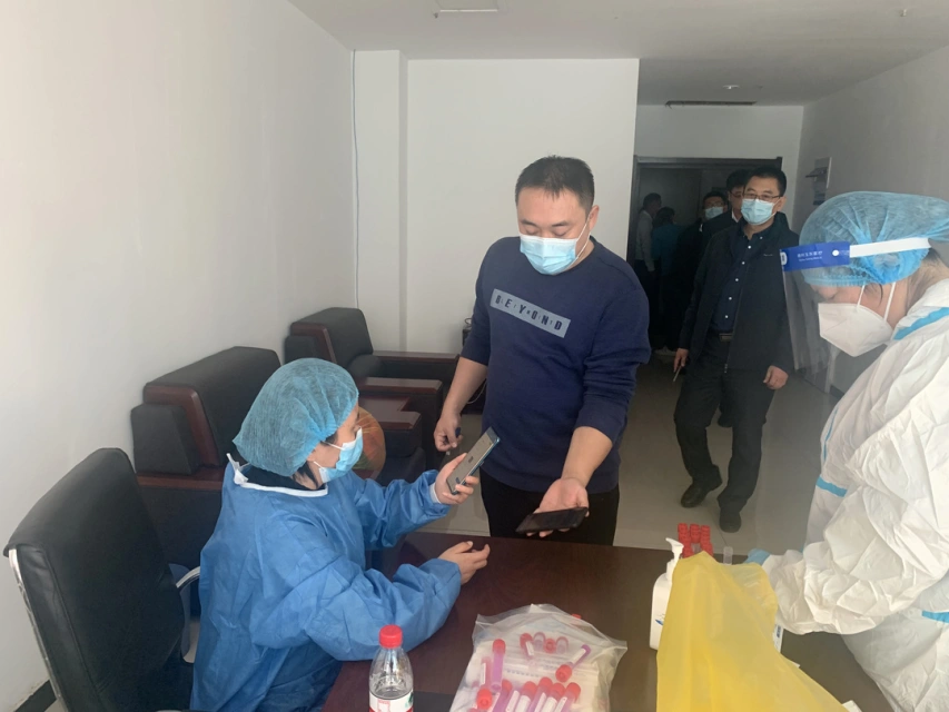 “来,请您配合,取下口罩,抬头张嘴……”11月4日,中煤一局事务中心邀请专业检测机构人员到指定隔离点对165名在邯人员进行了新冠肺炎病毒核酸检测。检测现场严格按照防疫要求分散站位,采样人员按照规范流程穿戴防护设备,逐一进行检测。