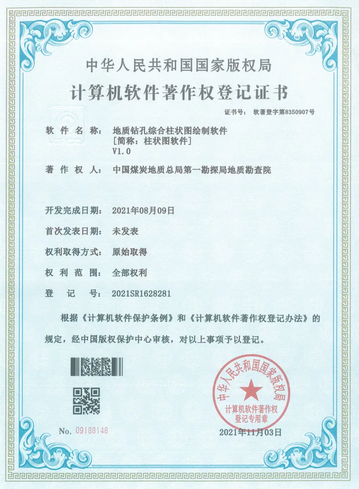 近日,勘查院自主设计研发的“地质钻孔综合柱状图绘制软件V1.0”通过了中国版权保护中心审核,并获得国家版权局登记的计算机软件著作权,这是今年勘查院取得的首个软件研发成果。