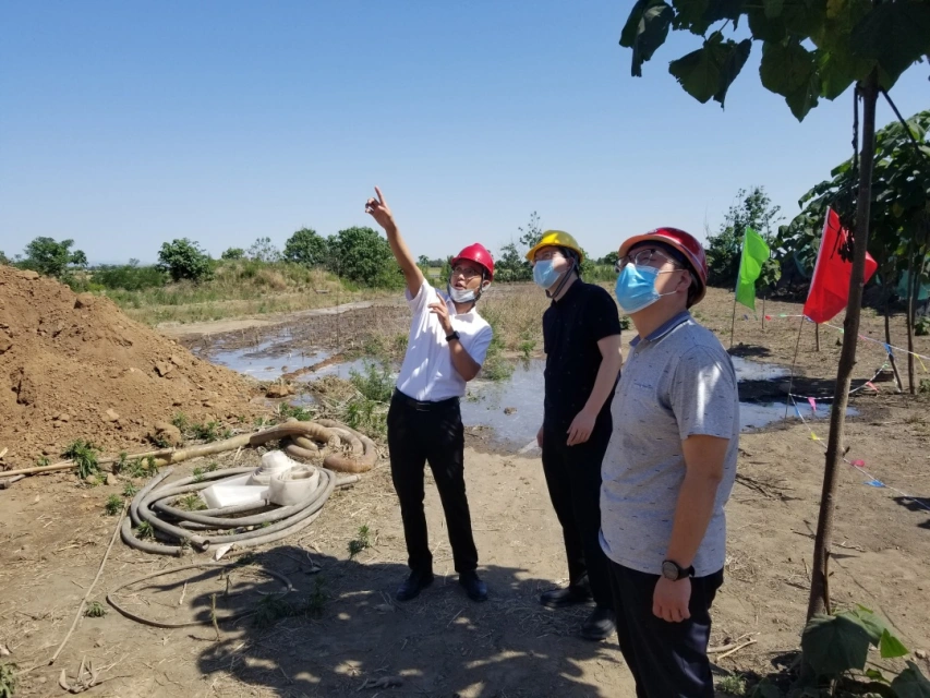 5月31日,物测公司经理亓增刚、副经理周南、总工程师王磊带领安全科及经营科相关负责人一行来到东庞矿地质及水文地质补勘项目部视察。项目负责人首先对该项目的生产进展、技术要求、施工环境、安全培训及下一步工作计划进行了汇报,亓增刚对项目的前期工作给予充分肯定。