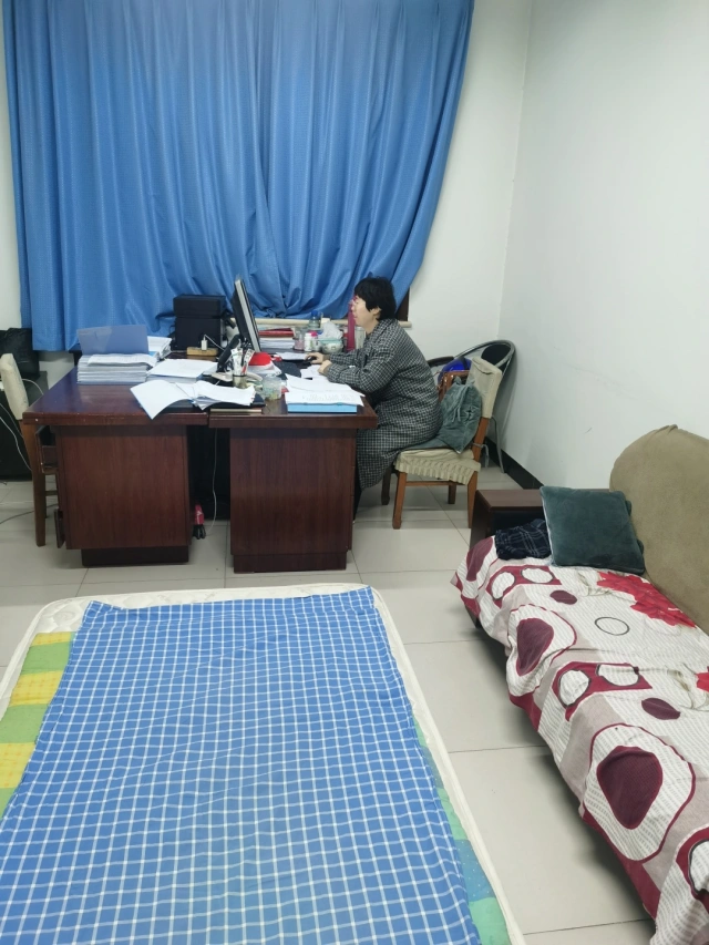 紧急预案制定后,近20名干部职工回家取了枕头被褥、洗漱用品和换洗衣物后就立即回到公司进入工作状态。到了晚上,住宿场所有限,有的人在办公室铺个垫子席地而睡,有的人就在沙发上蜷缩一宿,没有一人叫苦叫累,早起大家集合到指定地点采集完核酸后,就又迅速投入到工作中去。在这困难时刻,一一九公司不仅克服了疫情带来的影响,而且按下经营生产“快进键”,开足马力冲刺全年各项目标任务。