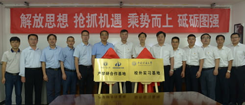 座谈后,举行签约和揭牌仪式。蔺国华、周来分别代表双方在战略合作协议上签字。冀涛、刘占库、李长贵一起为双方的“产学研合作基地”、“中国矿业大学校外实习基地”揭牌。