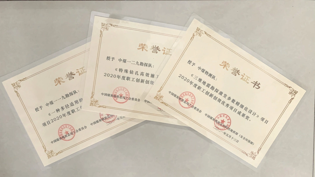 近日,中煤一局集团收到从总局工会、地质科技部(安全环保部)寄来的荣誉证书,集团公司三项职工创新创效技术类项目成果获得表彰。分别是119队《一种多径适用的井下钻机液压支柱底座》,129队《特殊钻孔高效施工技术应用研究》和物测队《三维地震勘探激发参数精细化设计》。