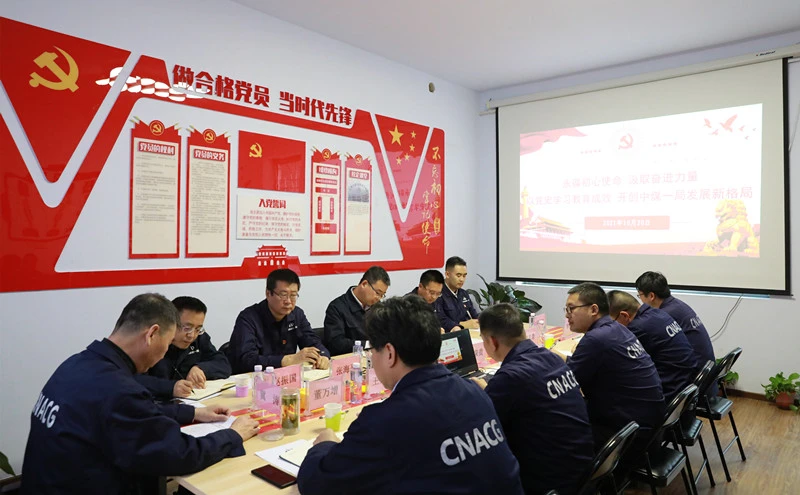根据中煤一局党史学习教育的总体部署和安排,10月20日,中煤一局党委书记、局长冀涛,副局长赵振国,副局长董万增一行深入蔚县项目部,听取施工进展情况和党建工作情况汇报,冀涛结合生产经营实际讲党史学习教育专题党课。