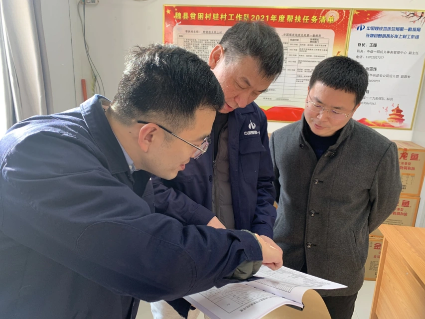 在岸上村大队部会议室,冀涛一行与魏县副县长王勇、野胡拐乡党委书记张鹤、岸上村两委等相关人员进行座谈,听取中煤一局(公司)驻村工作队的汇报。冀涛指出,加强党建引领,灵活利用“三会一课”等组织形式,深入学习宣传贯彻习近平总书记“七一”重要讲话精神、党的十九届六中全会精神等党内重大理论成果,深刻感悟党的十八大以来所取得的巨大成就。要不断促进党建与企业生产经营深度融合、与地方发展深度融合,要充分发挥党支部的战斗堡垒作用和党员先锋模范作用,深挖地方资源,依托区位优势、环境优势,找准自身产业优势,巩固脱贫成果,坚决防止返贫致贫。要严格落实省地市相关工作要求,不折不扣抓好落实、助力乡村振兴,建设村容村貌新、村风民风正的新农村。