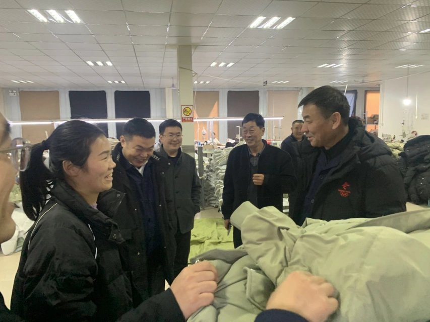 在岸上村扶贫微工场里,工人们正在赶制服装,一派热火朝天的工作景象。在得知工厂里的订单均已通过淘宝销往全国各地后,冀涛对驻村工作队助力当地村委,送项目到村、送技能到户、送就业到人,以发展乡村经济带动群众就业的新路子表示肯定,并嘱托工厂负责人在加班加点工作的同时也要加强节日期间防火安全。