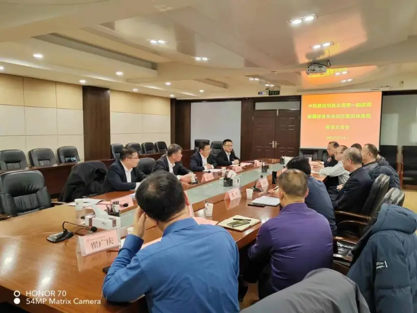 冀涛欢迎新疆维吾尔自治区自然资源厅相关领导莅临中煤一局检查指导工作。他指出,中煤一局总部迁址太原,市场阵地前移,辐射晋陕蒙新,发挥技术优势承接相关业务。中煤一局扎根新疆较早,对当地情况了解深入,积累了丰富的施工经验,接下来将继续发挥企业技术优势,在煤炭煤层气资源勘查、矿山地质、水文地质勘查、技术服务及煤矿矸石处置等方面进一步提供更加优质的技术服务,全面助力地方发展。
