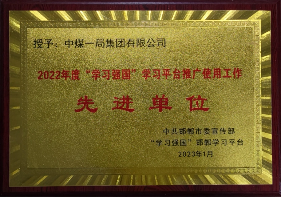 近日,中共邯郸市委宣传部对2022年度“学习强国”推广使用工作成果进行通报表扬,中煤一局表现优异,喜获2022年度“学习强国”学习平台推广使用先进单位,邯郸市建设党委系统仅有4家单位获此殊荣;1名职工荣获“学习强国”学习平台优秀管理员。