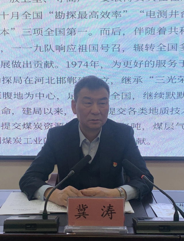 冀涛强调,全局党员干部职工要深入学习贯彻党的十九届六中全会精神,传承地质人“三光荣”“四特别”精神,深入理解总局、中煤一局集团“十四五”发展战略,坚定理想信念,扎实推动党的建设和企业改革发展取得实效。