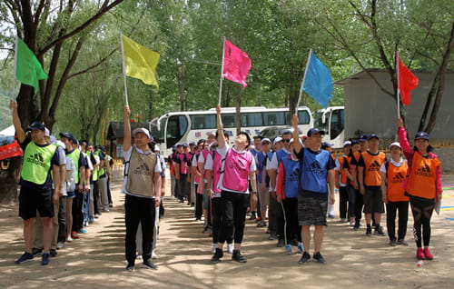 活动中,教练先是通过一系列的破冰活动,让大家融入到训练的氛围,紧接着在教练的指导下,总局与新兴际华的全体人员被打乱分成五个小队,每个小队确定自己的队长、队名、队歌、队徽。在这个群策群立的过程中,每个队员的才智与特长都得到充分的发挥,相互间由不熟悉到熟悉、融洽、默契,集体的力量得到充分展现。在接下来的指压板挑战、徒步穿越等一系列活动中,各队参训人员都体现出良好的精神状态,随着项目难度和对团队配合需求度的逐步加大,对团队力量的挑战也逐渐提高。每支队伍从开始的措手不及到渐渐走向有组织有纪律、有分工有合作、灵活高效地应对每一次挑战。